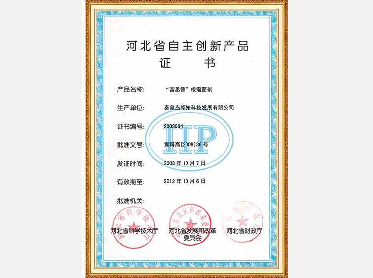 富思德牌微生物菌劑—河北省名牌產(chǎn)品證書