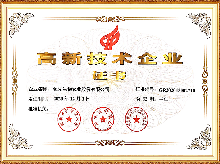 高新技術(shù)企業(yè)證書(shū)